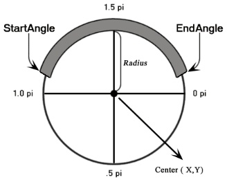 起始角度 | 數(shù)字 | 起始角度,以弧度為單位,順時(shí)針方向,0 對應(yīng)于圓右側(cè)的 3:00 點(diǎn)鐘位置。 |